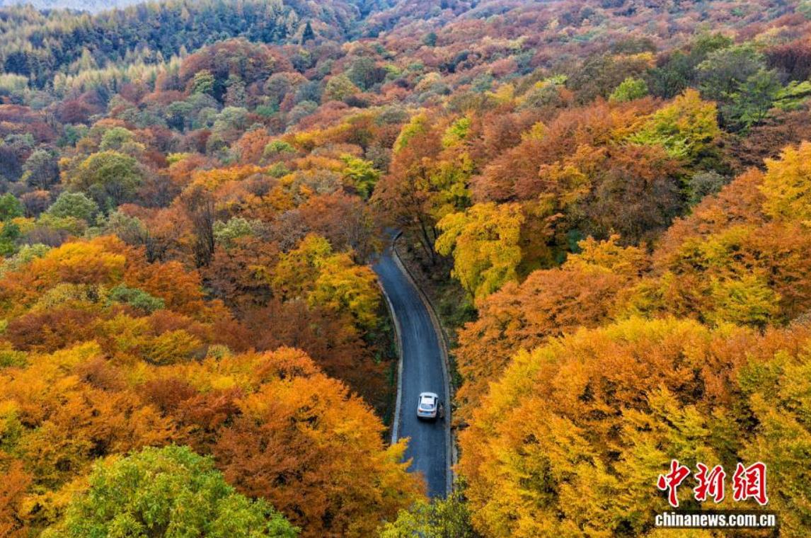 四川旺蒼米倉山萬山紅遍 游客陶醉彩林間